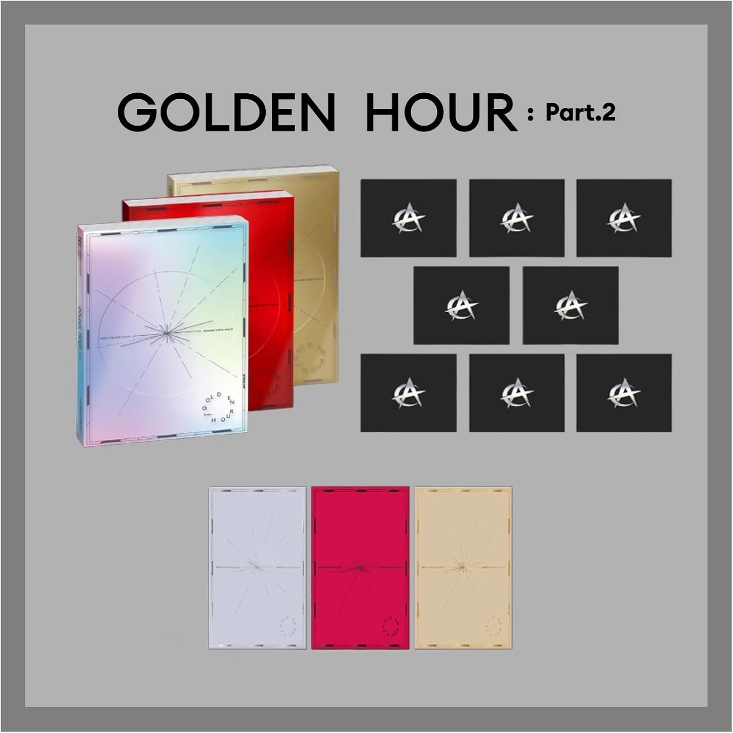 ATZ GOLDEN HOUR PART.2 11th Mini AlbumRelease Date - 15th November 2024-Standard Contents- CD+120p Photo Book+1ea Logo STicker+1ea Ornament+1p Photo Card A +1p Photo Card Z+1p Text Card+1ea Photo Frame&Post Card Set +1p Post Card+1p Folded Poster on Pack+Free Tracking Number.-POCA Contents- 1ea Photo Stand+1p QR Card+1p Image Card+1p Photo Card A +1p Photo Card Z+2ea Sticker+1ea User Guide+Free Tracking Number.-Digipack Contents- CD+56p Photo Book+1ea Logo Sticker+1ea Slide Film+1ea Bookmark +1p Photo Card+Free Tracking Number.POCA Version does not include a disc.3 Version Set includes 1ea Random Standard Version+1ea Random POCA Version+1ea Random Digipack Version. 7 Version Set includes Standard 3 Version Set+POCA 3 Version Set+1ea Random Digipack Version. Full Set includes Standard 3 Version Set+POCA 3 Version Set+Digipack 8 Version Set.Tracklist. TBD✔All products provide authentic brand-new items directly from manufacturers, delivered in sealed packaging. ✔All albums contributes the HANTEO & GAON Chart; all items include tracking and secure packaging.