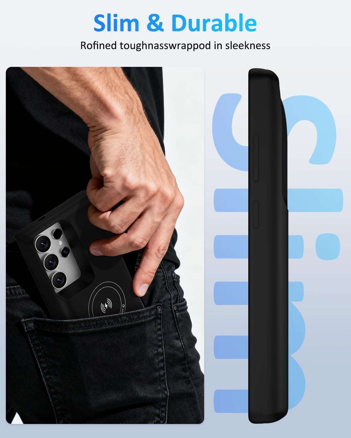 10000mAh Portable Battery Case for Samsung S22Ultra/S23Ultra Features: 1. Slim Design with High Capacity 10000mAh. 2. Foldable kickstand design. 3. Smart IC Chip protects from overheating. 4. Works with Apple AirPod and other wireless Bluetooth headphones. Kindly Notes: 1. This battery charger case is foSamsung Galaxy S22Ultra/S23Ultra ONLY. 2. This battery case does NOT support Wireless charging and sync-through functions. 3. We recommend using your original lightning cable with this battery charger case. 4. NOT works with Lightning headphones. Specifications: - Capacity: 10000mAh. - Input: 5V/2A - Output: 5V/1A - Compatibility: Work with Samsung S22Ultra/S23Ultra - Charging Power Level: (25%-50%-75%-100%).