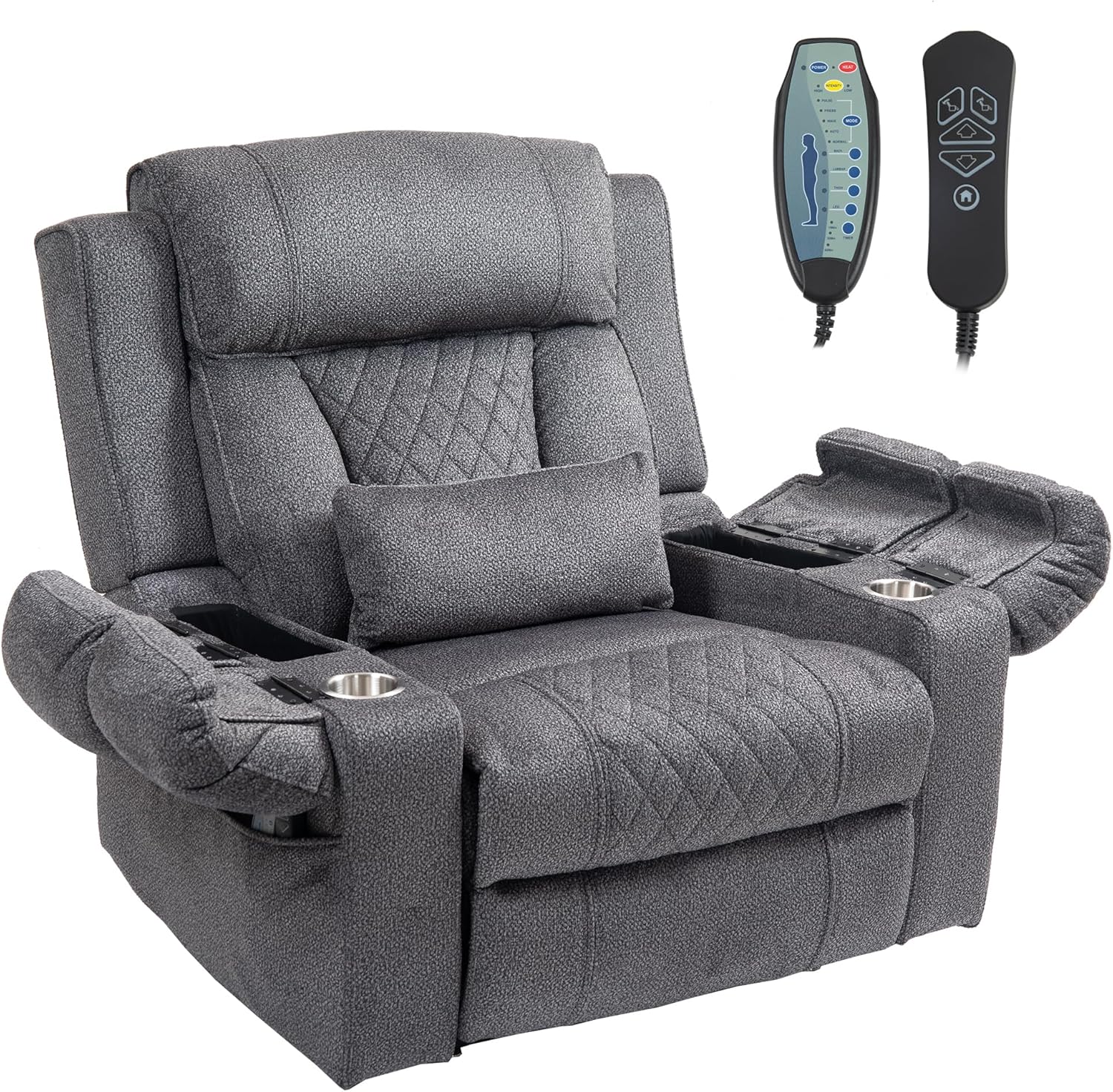 | Included Components | 1 Power Source and 1 Power Cord, 2 Side Pockets, 2 remote controllers, Two Cup Holders, recliner chair base |