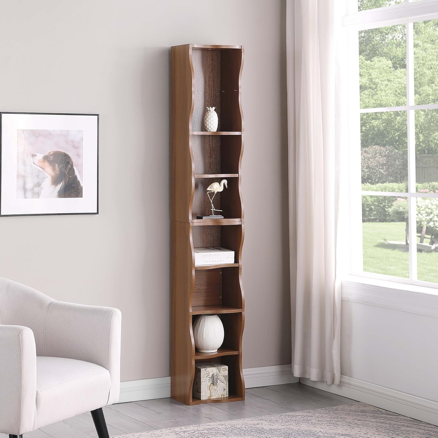 β¨ Maximize Your Space with Style & Function! β¨Discover the perfect blend of elegant design and smart storage with our ultra-slim bookshelf. This stunning 8-tier unit combines space-saving innovation with decorative appeal, offering customizable organization that grows with your needs. Whether you're storing books, displaying collectibles, or organizing office supplies, this versatile shelving solution transforms any space into an organized oasis while adding a touch of modern sophistication.π Key Features & Benefits:π Adjustable 8-Tier StorageCustomize your space with eight adjustable shelves that can be set at three different height levels. Perfect for storing books of all sizes, photo frames, plants, office supplies, and decorative items while keeping everything organized and accessible.π Elegant Wave DesignElevate your decor with the beautiful wavy border detailing that adds artistic flair to functional storage. The contemporary design seamlessly blends with modern, traditional, and transitional decor styles, making it a stylish addition to any room.ποΈ Sturdy & Safe ConstructionRest assured with our durable MDF construction featuring waterproof PVC coating that resists moisture and stains. The anti-tip hardware and reinforced iron bar connectors between upper and lower sections ensure stability and safety for your belongings.π Space-Smart DimensionsThe slim 11.6-inch depth and narrow profile fits perfectly in tight spaces, between furniture, or in small rooms. Despite its compact footprint, the 71-inch height provides substantial storage capacity without overwhelming your space.π‘οΈ Protected Delivery GuaranteeExperience peace of mind with our ISTA 3A certified packaging that undergoes rigorous drop testing. Your bookshelf arrives in perfect condition, ready to transform your space.π― Perfect For: Home offices πΌ Living room displays ποΈ Bedroom organization ποΈ Apartment living π Book collections ππ Care Instructions:Simply wipe clean with a damp cloth. Avoid abrasive cleaners to maintain the finish. For stubborn stains, use mild soap solution.π Quick Assembly:Most customers complete setup in under 30 minutes with our clear instructions and all necessary tools included.π Versatile Uses: Book storage and display Photo frame gallery Plant display shelf Office supply organization Decorative collectibles showcaseTransform your space with the shelving solution that combines beautiful design, smart organization, and space-saving efficiency! πβ¨
