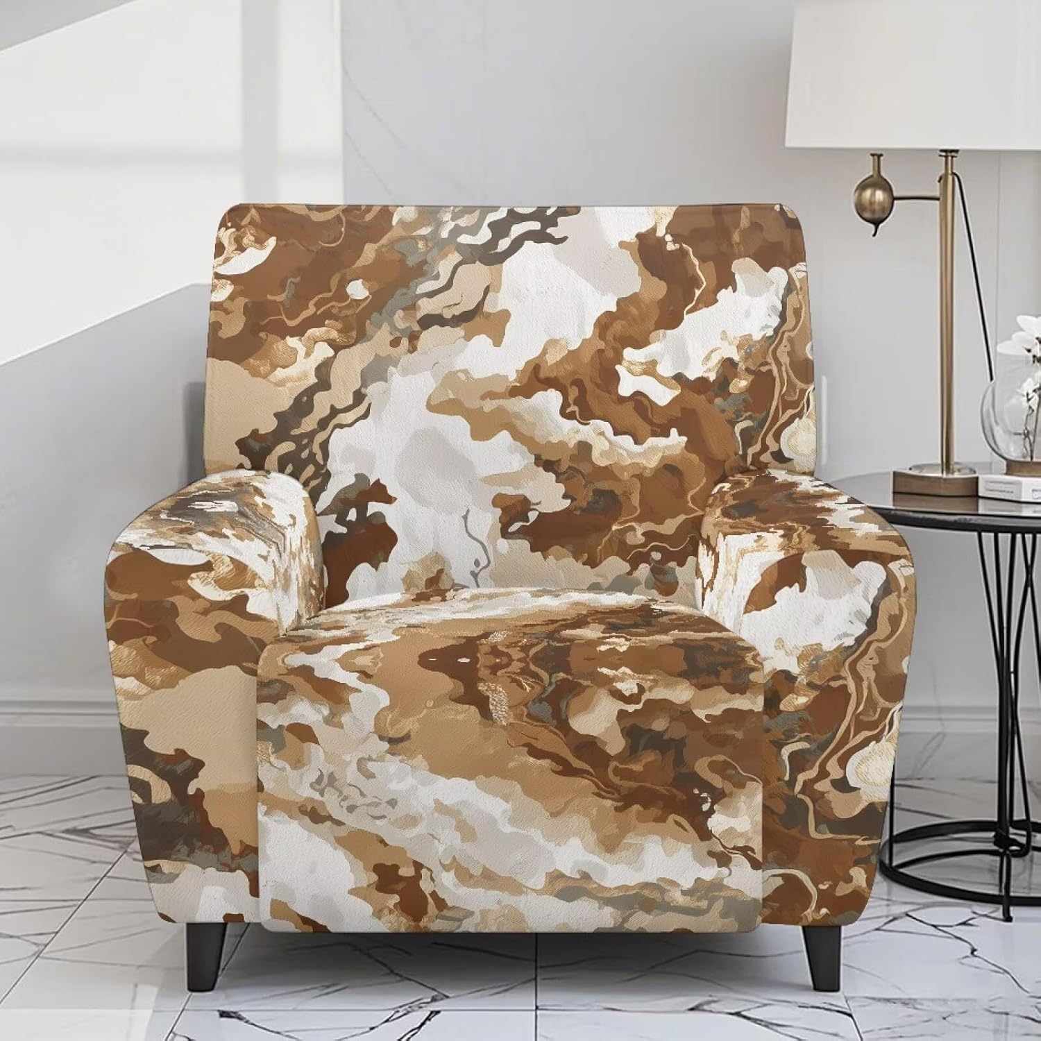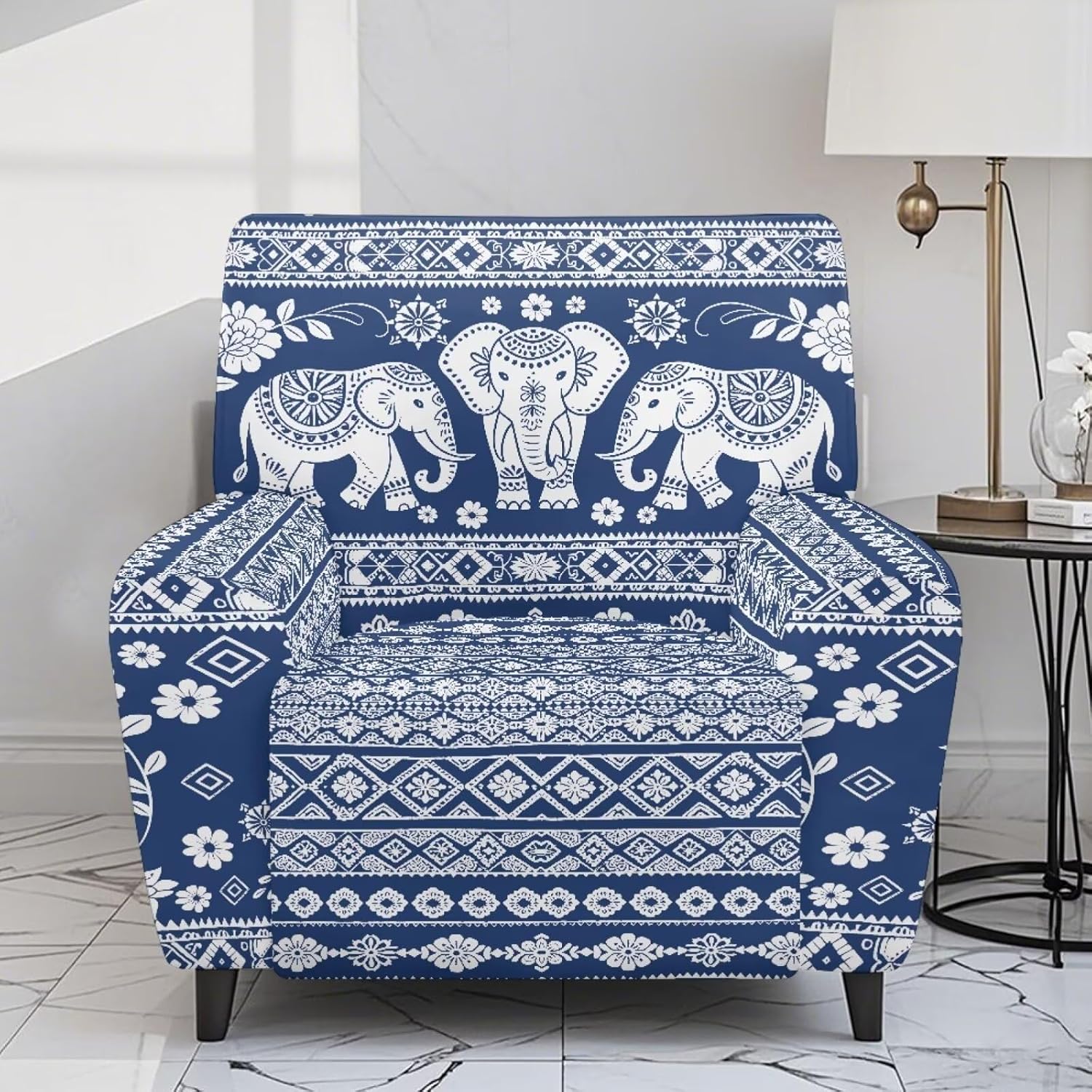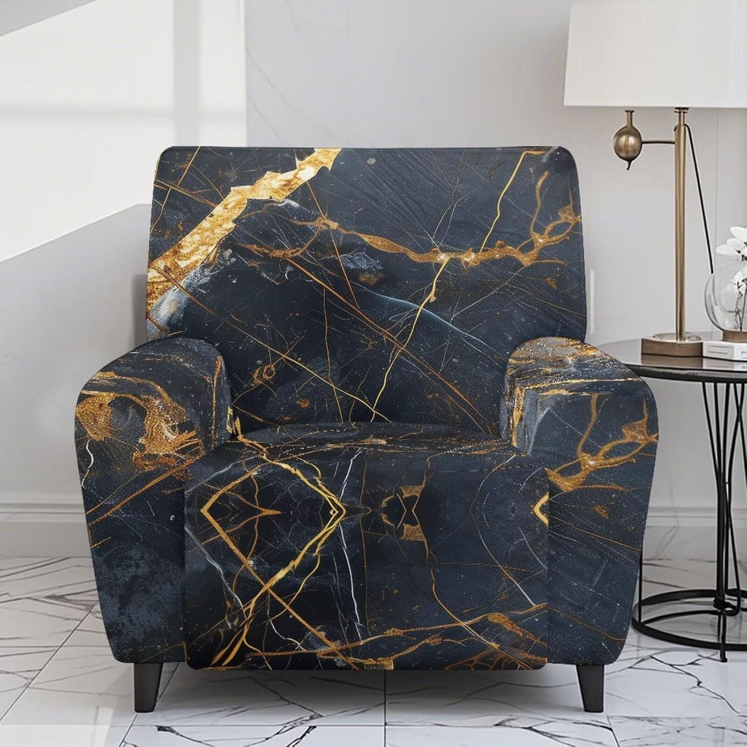 Made from durable, breathable polyester and spandex, this sofa cover stretches for a comfortable fit.It resists wear and tear, is easy to clean, and effectively shields your sofa from stains and damage. Reduce everyday wear, renew older furniture, or keep your new sofa looking pristine Product List: 1 x Recliner Cover (includes 4 pieces: 2 arm covers, 2 seat covers) INSTALLATION STEPS: 1.Position Seat Cover: Place the seat cover over the front of the seat cushion. Smooth it out and secure the elastic loops underneath 2.Attach Arm Covers: Slide the arm covers into place. Once positioned, fasten its elastic loops 3.Secure Back Cover: Position the back cover and fasten its elastic loops to hold it securely 4.Final Check: Inspect the entire slipcover, ensuring all elastic loops are secure and the fabric is smooth and properly aligned, adjust as needed WASHING TIPS: Do not bleach Do not iron Tumble dry on low heat to extend its lifespan NOTE: 1.Due to lighting and screen settings, the actual item color may vary slightly from the images 2.Please allow for minor size variations as this is a hand-measured product