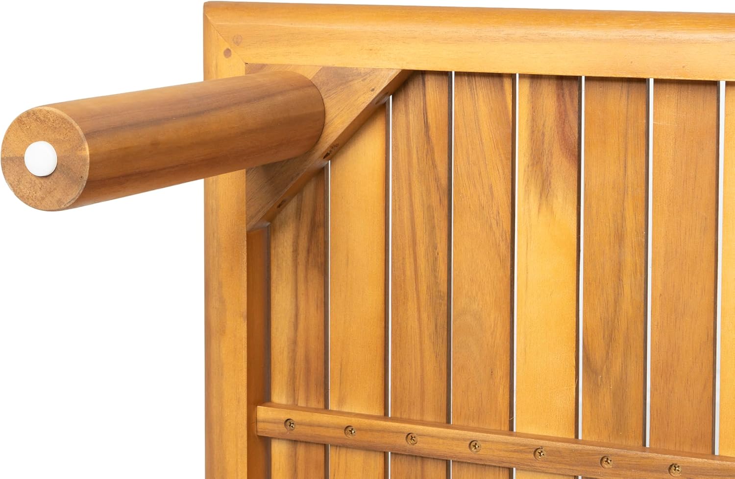 Enhance your outdoor living space with this beautifully crafted acacia wood patio coffee table, designed with a durable frame and a slatted top that promotes airflow and quick drainage. Its spacious rectangular surface offers ample room for drinks, snacks, or décor, while the rounded legs add a refined modern touch. Perfect for patios, gardens, porches, and backyard lounges, this versatile table brings natural warmth and lasting style to any outdoor setting.