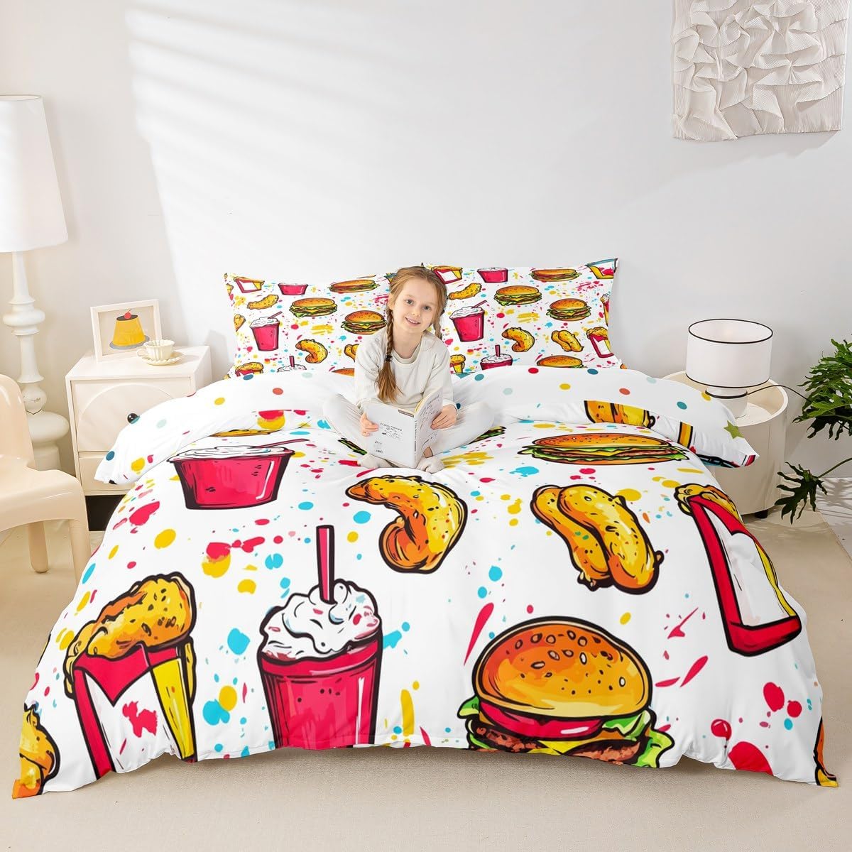Package Include: Duvet Cover, Pillowcase; High Quality Duvet Cover Set Pattern Bedding Set, simply decorating your rooms any time you want, bringing you fresh feel for year round use. Polyester: Made from polyester microfiber, the sheet set offers strength, natural resistance to shrinking and a noticeably soft hand feel. Size Information: Toddler size 2pcs: 1 x Duvet Cover 42" x 58", 1 x pillowcase 20" x 30".Without Comforter. Twin size 2pcs: 1 x Duvet Cover 68" x 90", 1 x pillowcase 20" x 30".Without Comforter. Full size 3pcs: 1 x Duvet Cover 80" x 90", 2 x pillowcase 20" x 30".Without Comforter. Queen size 3pcs: 1 x Duvet Cover 90" x 90",2 x pillowcase 20" x 30".Without Comforter. King size 3pcs: 1 x Duvet Cover 104" x 90", 2 x pillowcase 20" x 36".Without Comforter. Personalize your bedroom: Beautiful design and colorful print, makes your bedroom unique and brings you a wonderful dream. Washing instructions: Machine wash separately in cold water,hang dry, do not bleach. Occasion: The cute soft duvet cover bedding sets designed for Children ,Adult, Men, Women, Teens. This duvet cover set is also suitable for full seasons, Spring, Summer, Autumn and Winter.