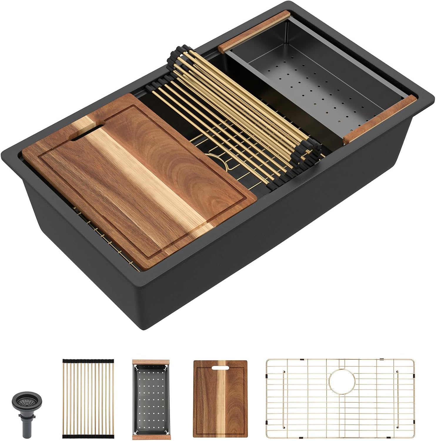 | Included Components | Colander, Cutting Board, Drain Assembly, Gold Bottom Grid, Gold Drying Rack |