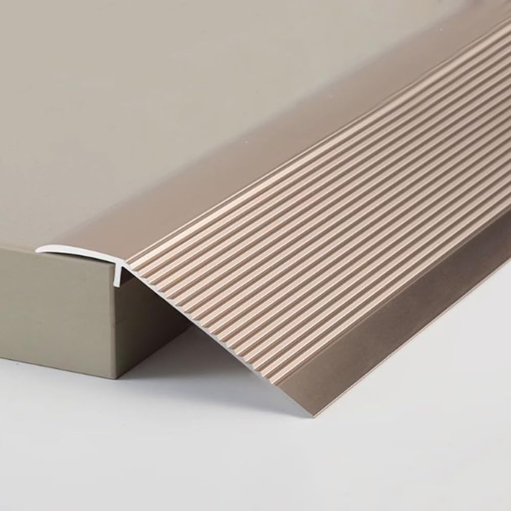● The floor transition strip is both light and sturdy. It can support adults, the elderly, people with limited mobility, and even sit on a walker to walk normally. At the same time, it facilitates the smart floor sweeper to clean your home without any obstacles.■ Transition strips prevents carpet edges from fraying, vinyl floor seams from curling and creates a smooth transition between different flooring surfaces.Product name: Floor Transition StripColor: Black , Brass , Bronze , Gold , Gray , Purple , SilverMaterial: Aluminum AlloyLength: 90CM- 3ft , 95CM- 3.1ft , 100CM- 3.3ft , 105CM- 3.4ft , 110CM- 3.6ft , 115CM- 3.7ft , 120CM- 3.9ft , 125CM- 4.1ft , 130CM-4.2ft , 135CM-4.4ft , 140CM- 4.6ftHeight Difference: 0.98"-2.16" (25-55MM)Width: 100mm (3.9")Package content: Floor Transition Strip ×1Excluding strong adhesive● Easily installed without tools, just use superglue paste it.▶ Tips:1. This product only contains 1 piece floor transition strip, the decorative items shown in the product photos are not included in the package.2. All products are measured by hand, there may be 1-3cm error, please refer to the actual product. Due to shooting angle, light and perspective, there will inevitably be slight errors and colour differences. Thank you for your understanding.
