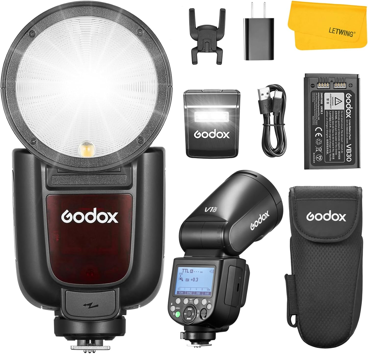 | BuiltIn Media | 1x V1 Pro Nikon Flash; 1x Storage Bag; 1x Detachable Sub Flash SU-1; 1x Lithium Battery; 1x USB-C Charging Cable; 1x Charger; 1x Flash Stand; 1x LETWING Cleaning Cloth |