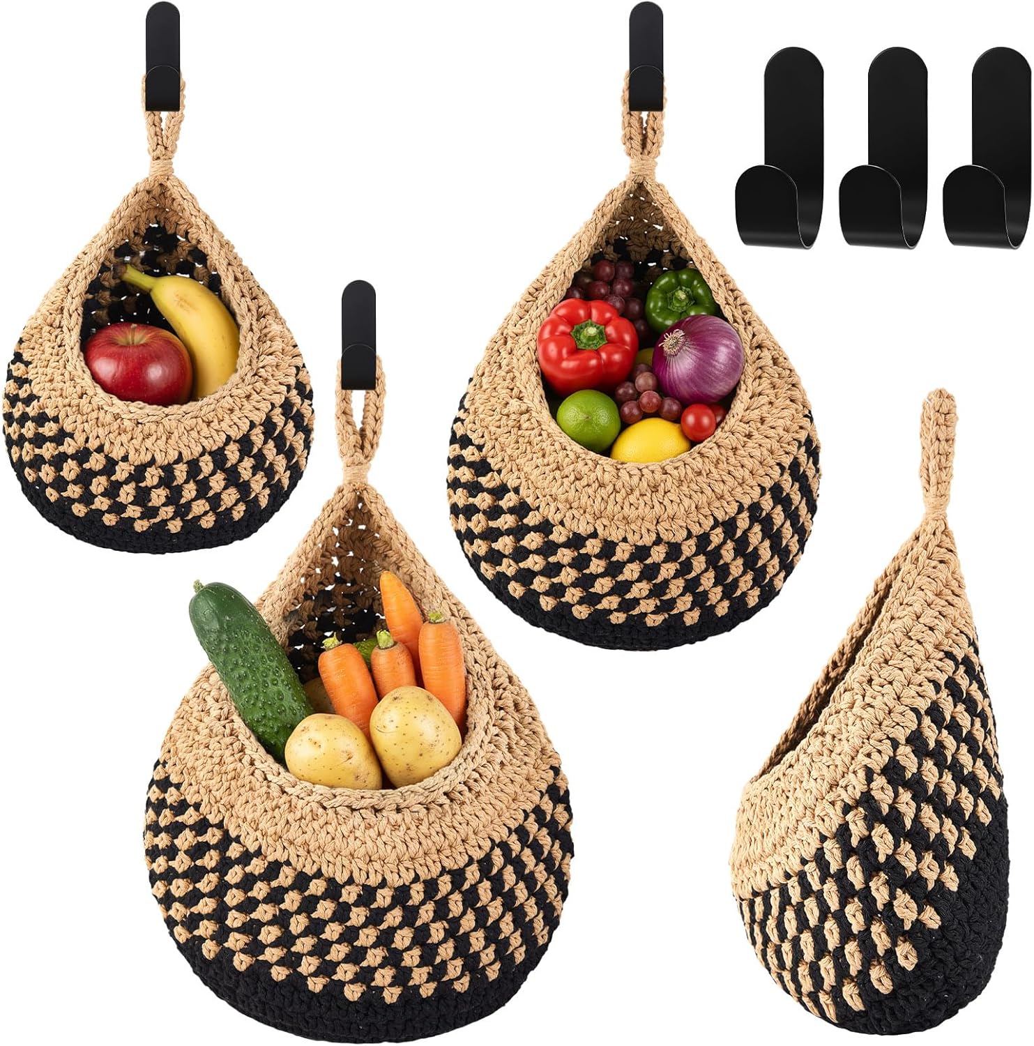 Features: Comprehensive and practical combination: You will acquire totally 6 pieces of kits in one package, including 3 pieces of different sizes of hanging baskets and 3 pieces of wall hooks, this convenient kitchen utensil set can save your counter top space. Reliable and quality material: Made of quality jute, our fruit baskets can serve you for a long time, which also can stand up to heavy weight of food. Furthermore, our wall hooks are made of sturdy stainless steel, not easy to break or deform. Specifications: Material: stainless steel hook Color: Linen Size: 3 sizes Package includes: 3 x Jute hanging baskets 3 x Stainless steel hooks Notes: Manual measurement, please allow slight errors on size. The color may exist a slight difference due to different screen displays. Pointed items, please keep these hanging hooks away from little kids