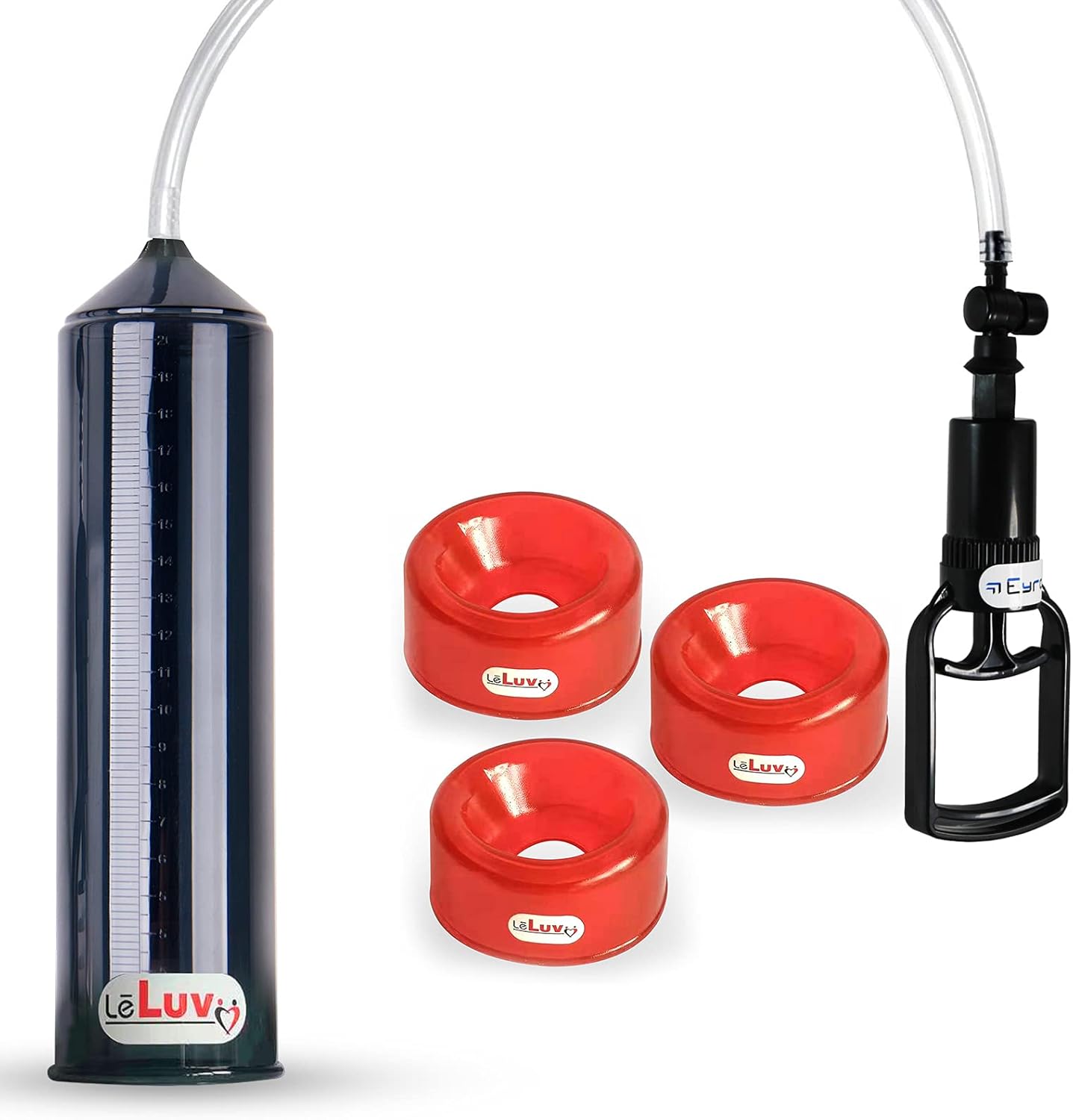 Bundle of 2 Items: Easyop Tgrip Penis Vacuum Pump with 3 Large TPR Sleeves. If you are looking for a safe and highly effective vacuum penis pump, then you should consider the LeLuv Vacuum Pump Easyop Tgrip Natural Male Enhancement Bundle with 3 TPR Sleeves. The product features a unique design that makes it very easy to use. Thanks to its Tgrip pump, virtually anyone can use this product. The design also makes it easier for people with larger hands to use. One of the most outstanding features of this men’s vacuum pump is that you can operate it with a single hand, thanks to its one-handed pump. Even a novice can use this unit, thanks to its ease of use. There is also a quick-release valve at the tip of the Tgrip handle that helps to prevent over-pumping. This feature makes the pump more ideal for beginners, as it protects against over-pumping. It is also ideal for almost all users, thanks to the sufficient room that the cylinder provides. The cylinder has an insertable length of 9 inches and an insertable diameter of 2.5 inches, which is great for a wide range of users. However, we recommend you know your measurement in order to settle for an option that would fit.TPR sleeves: the fundamental must-have accessories for creating an airtight pumping environment. The three TPR sleeves are the "large" size - referring to the unstretched opening size of 1.4" (3.5 cm.)