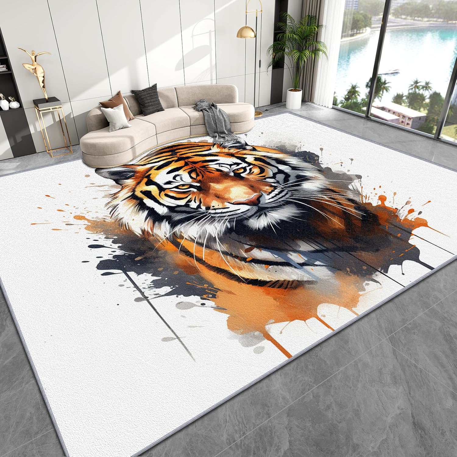 Lion Rug & Home Decorations 2x3 area rug / 60x90 cm Features Super Soft Area Rug Ultra soft and luxury to the touch, this lightweight floor carpet is made from skin-friendly, safe and kid friendly materials to pamper and relax your feet Upgraded Non-slip Bottom This alfombras feature a dense and durable TPR rubber backing that help increase friction with the floor and prevent sliding Room Decor Say goodbye to boring plain carpet and decorate your room with this excellent printed alfombra Perfect for livingroom, bedrooms, classroom, guest room, hallway, home office, kitchen, laundry room, study room and so on Well Made This machine made rug is tightly woven and has neat edge, making it more durable Our carpet adopts advanced 3d digital printing technology with clear pattern, high color fastness and no fading Pet Friendly Cats and dogs will also love this comfortable area rug because of the quality fabric choice Easy To Clean For partial cleaning, just wipe with a damp cloth or low frequency vacuuming For Integral cleaning, we recommend that you machine wash / hand wash it with room temperature water, then air dry Customer Service If you have any questions about our products, please feel free to contact us, we have professional customer service staff to serve you
