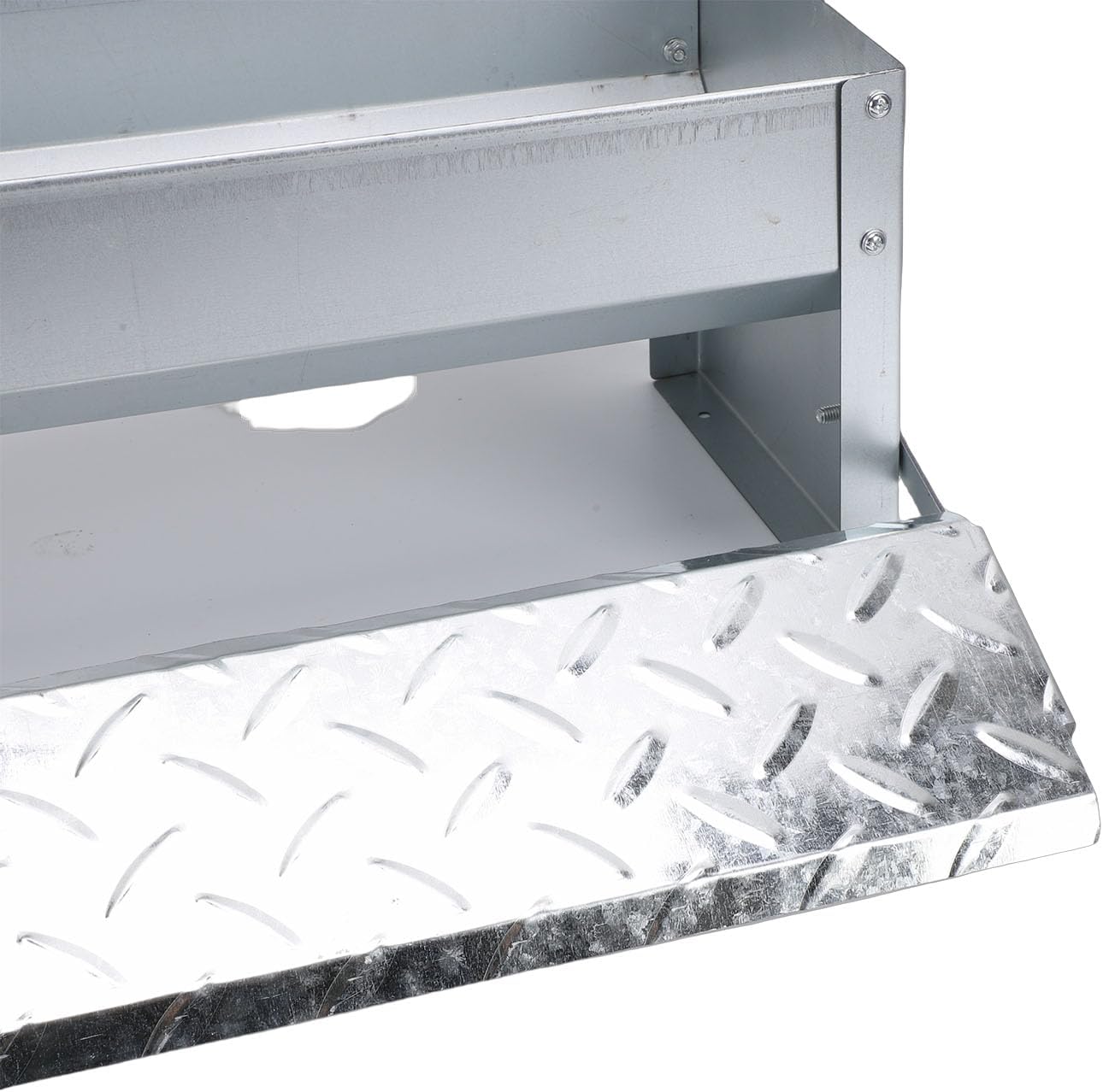 1. AUTOMATIC FEEDING DESIGN: This chicken feeder comes with a treadle design for automatic feeding, making it convenient for poultry farmers to feed chickens effortlessly. 2. RAIN PROOF FEATURE: The rain resistance design protects food from water damage, ensuring that the chickens remain health and well fed in all weather conditions. 3. RAT RESISTANCE STRUCTURE: The treadle poultry feeder is crafted to prevent rat from stealing chicken feed, keeping their diet safe and secure from unwanted animal. 4. LARGE CAPACITY: Designed for farming settings, this feeder has a large capacity to meet the daily dietary needs of chickens, ensuring they are always well nourished. 5. QUALITY MATERIAL: Made from stainless steel, this treadle feeder is specifically designed for poultry use, offering robust quality for a more effortless and convenient chicken raising experience. Specification: Item Type: Chicken Feeder Material: Stainless Steel Weight: Approx. 2990.00g / 105.47oz How to Use: Direct Use packing list: 1 x Chicken Feeder (4 Components) 23 x Screws 18 x Nuts 2 x Accessories Notice: