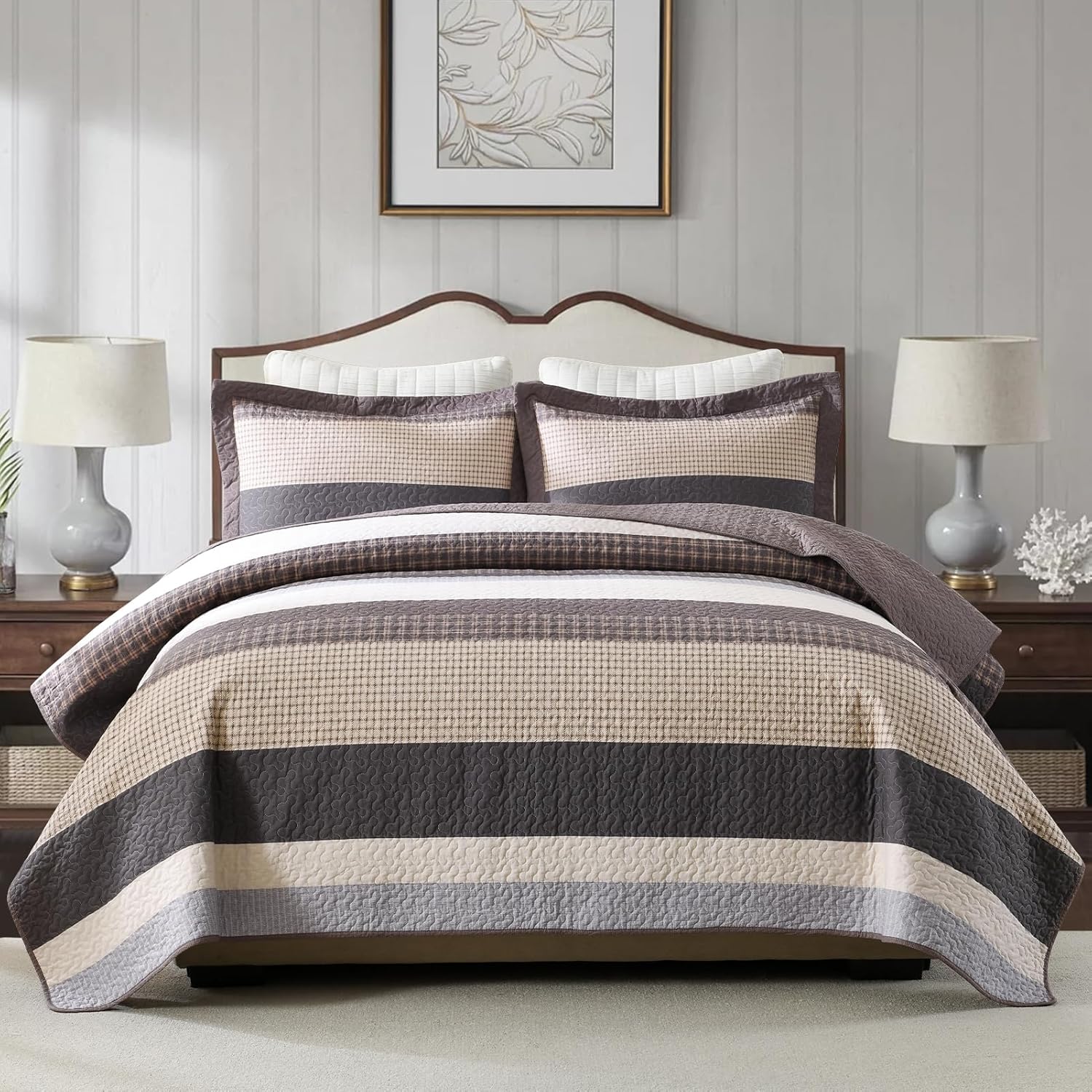 | Pattern | farmhouse stripe and micro-check |