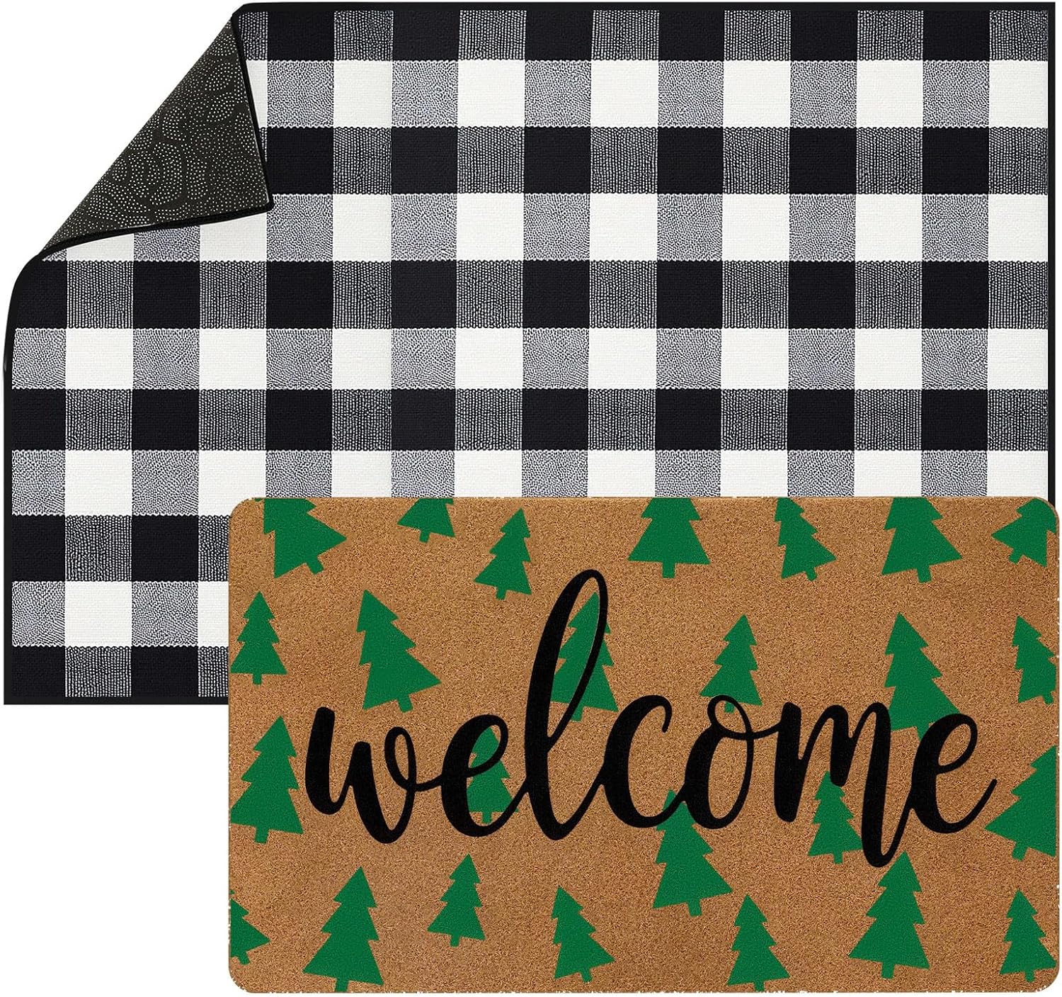 Package Included: you will receive a green doormat with welcome printed on it and 1 checkered doormat, which is simple and classic with a stylish feel; You can put them together or separately at different entrances to welcome your guests